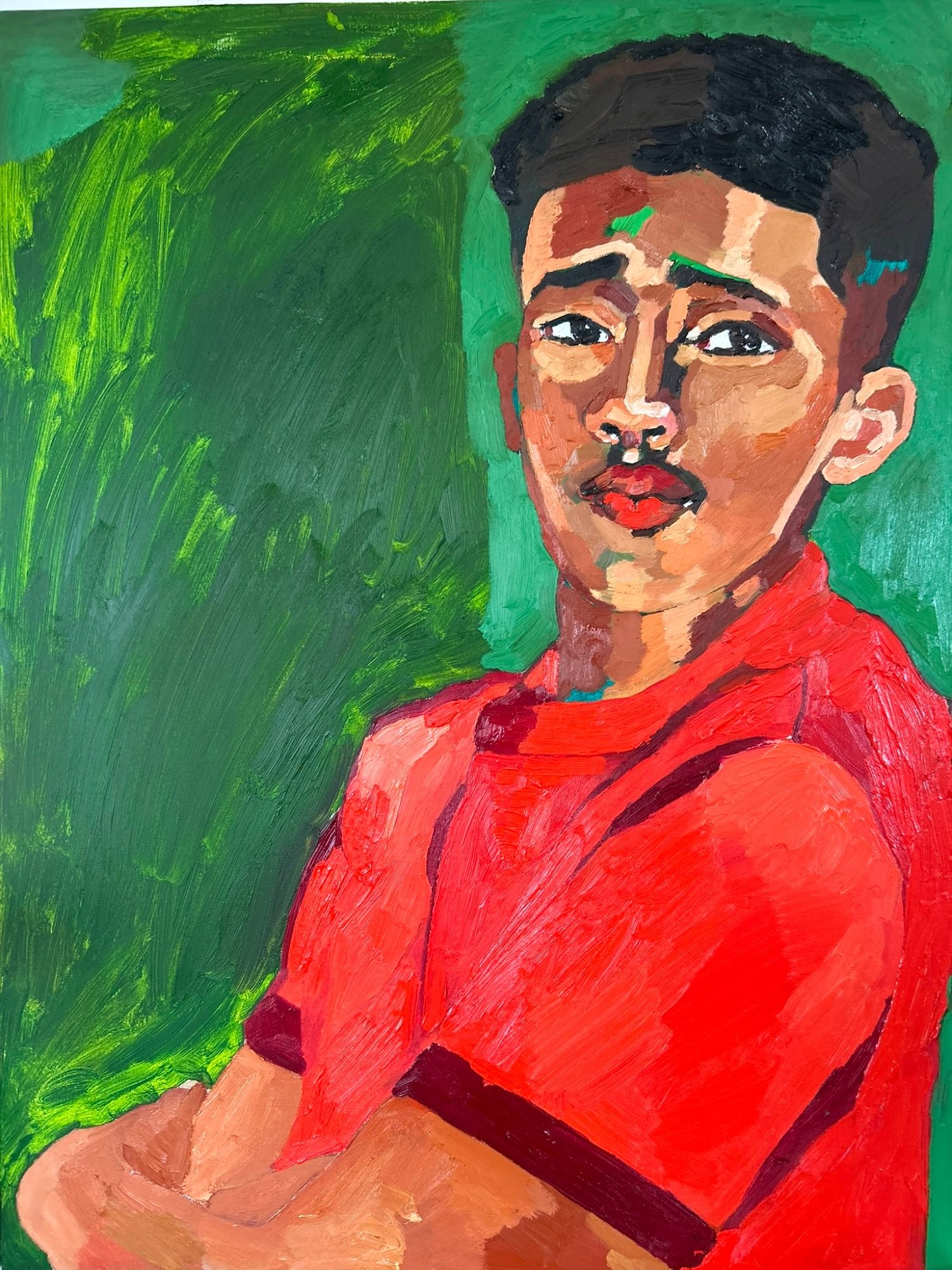 Mother Work centres on paintings of my children, each holding a gaze that resists easy reading. They are not portraits but meditations on care, projection, and inheritance — how love, fear, protection, and uncertainty occupy the same space.