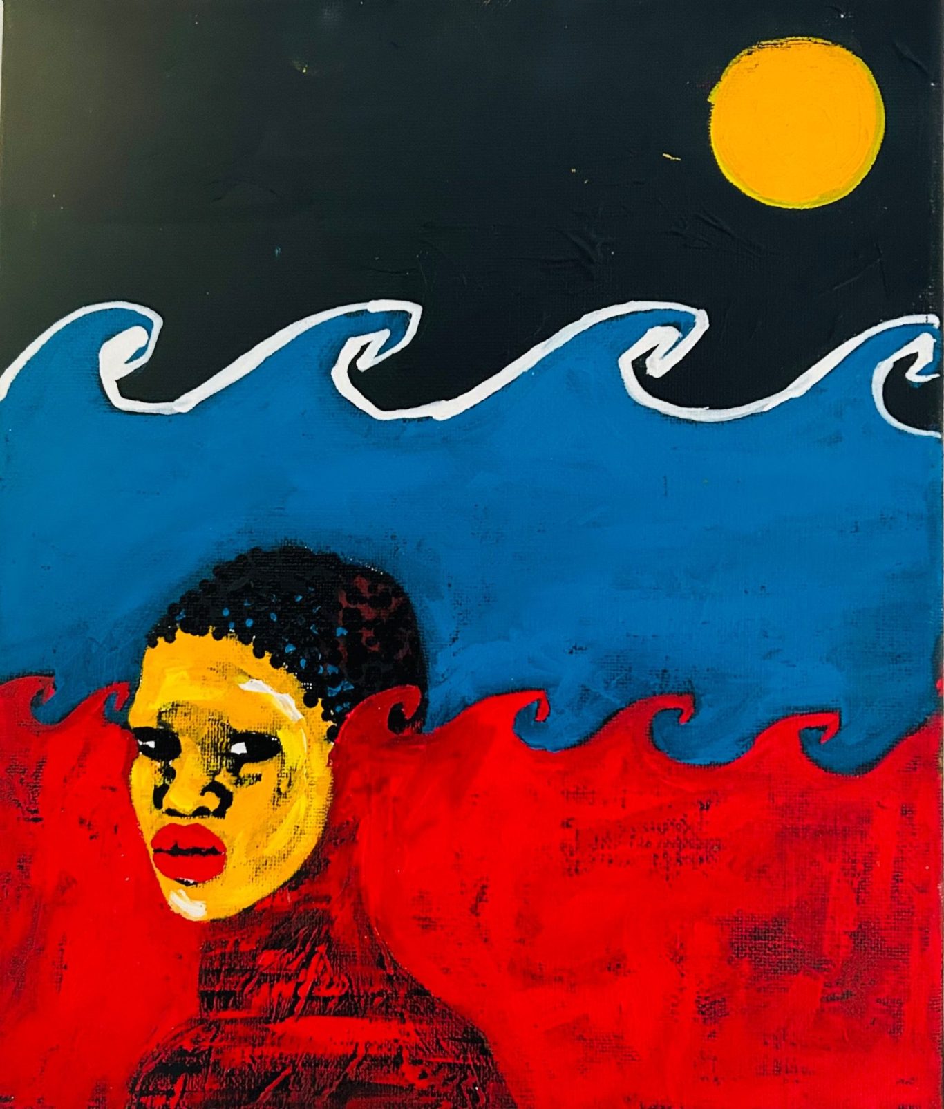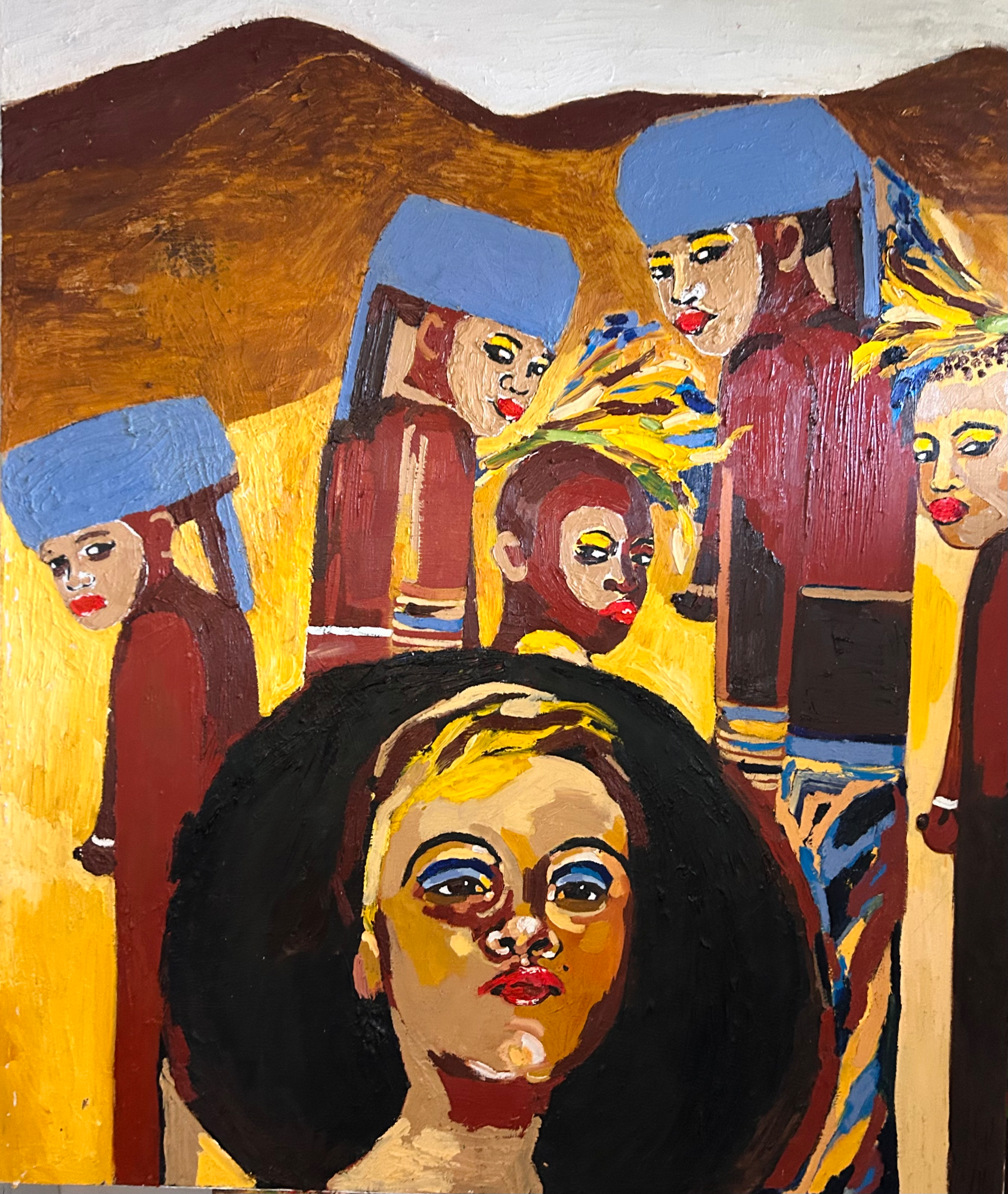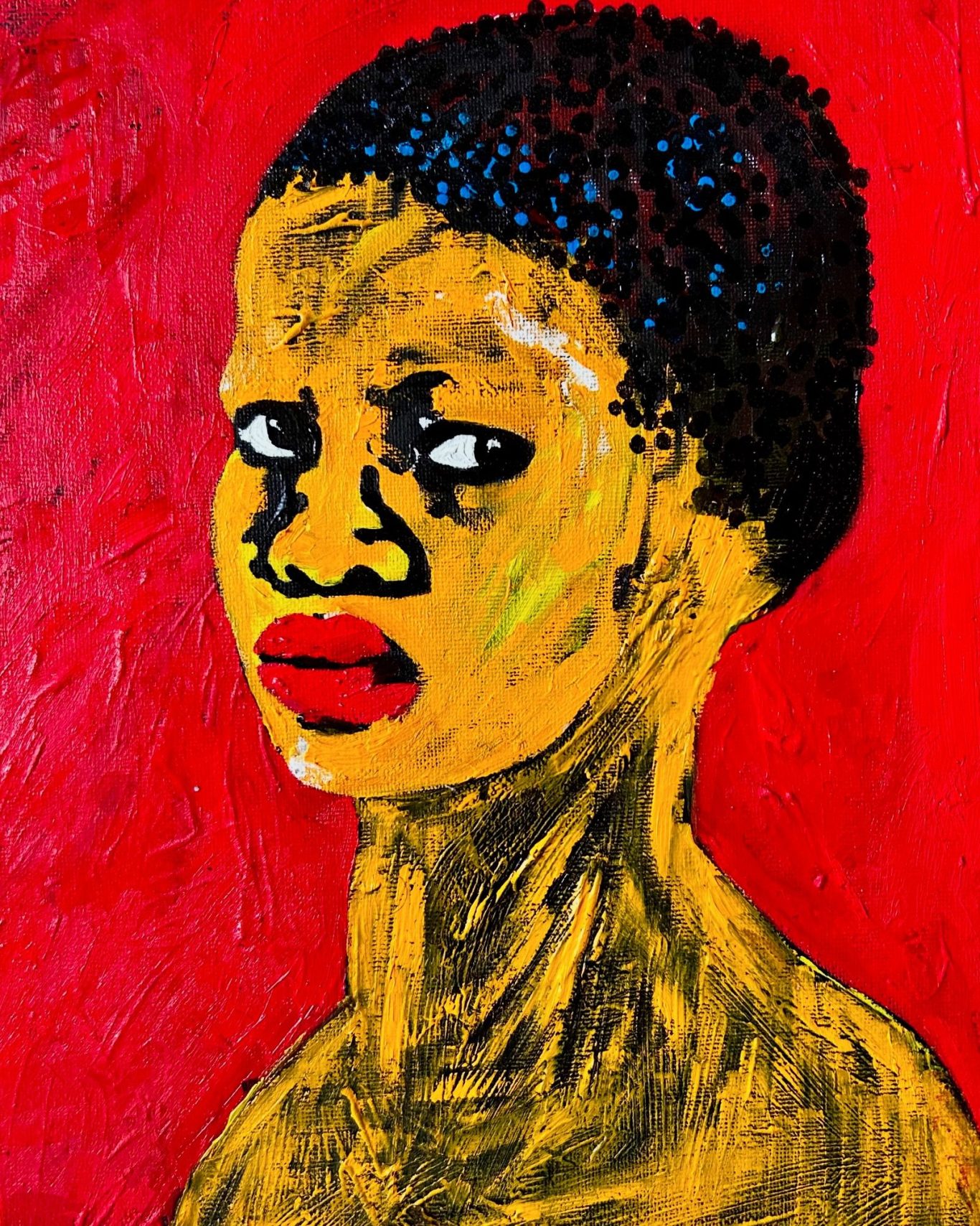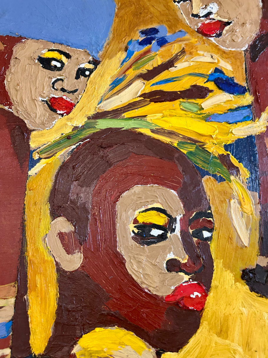 Afrassa’s portraits celebrate the people of the sun with rich, radiant skin and honest, direct gazes. Through bold colour and layered surface, the work honours skin as living texture and identity, capturing presence, resilience and the powerful tension of being seen.